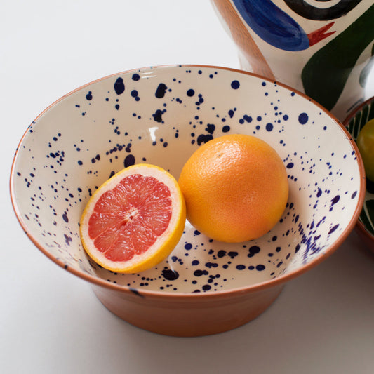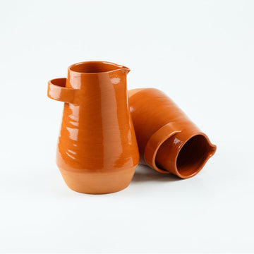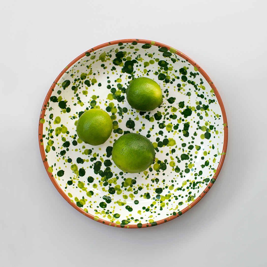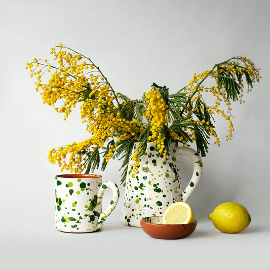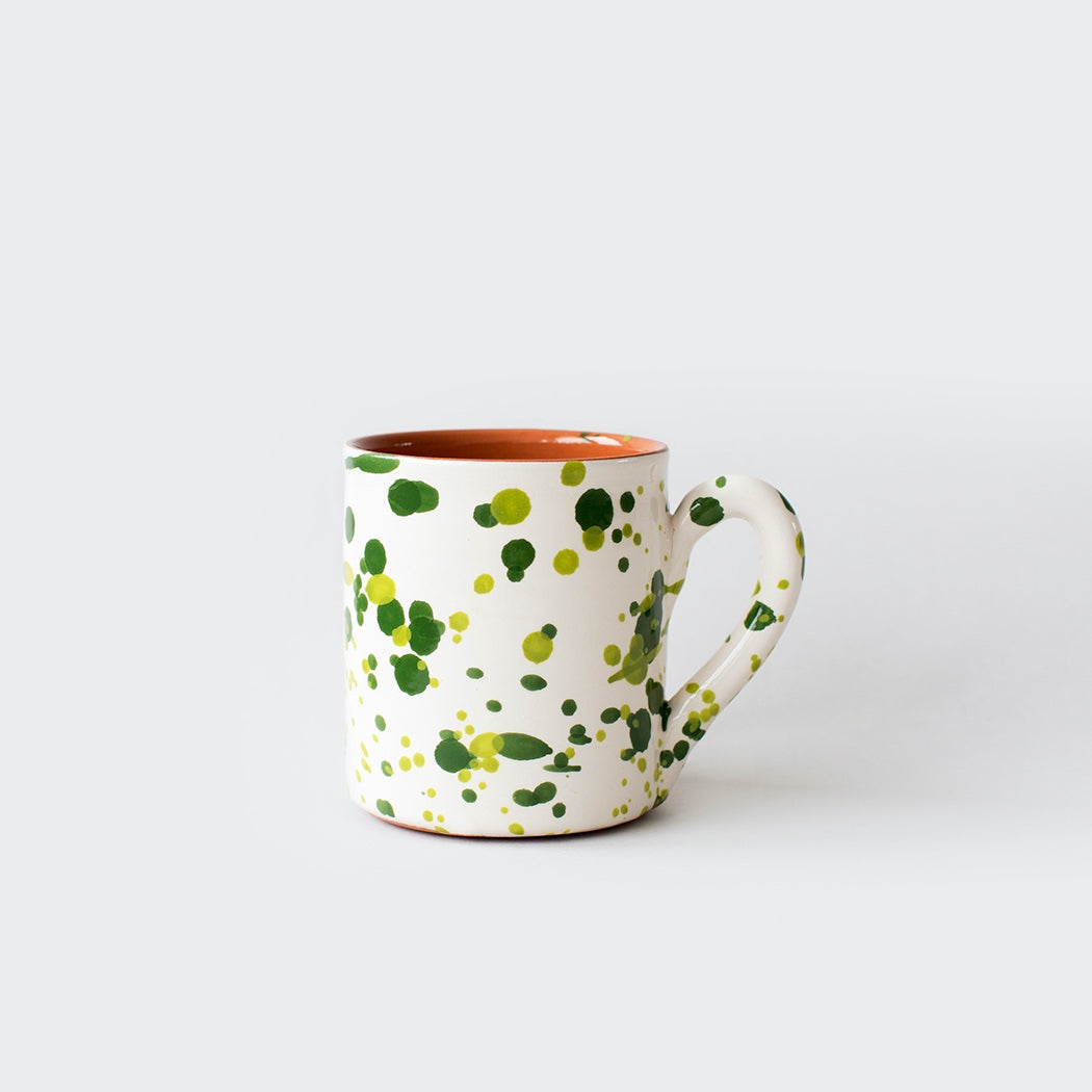 The Chroma mugs are distinctive hand thrown terracotta mugs. Made in a traditional way on a pottery wheel by Portuguese craftsmen, the mugs are then finished in a contemporary style with a crisp white glaze being hand painted in green spatter.